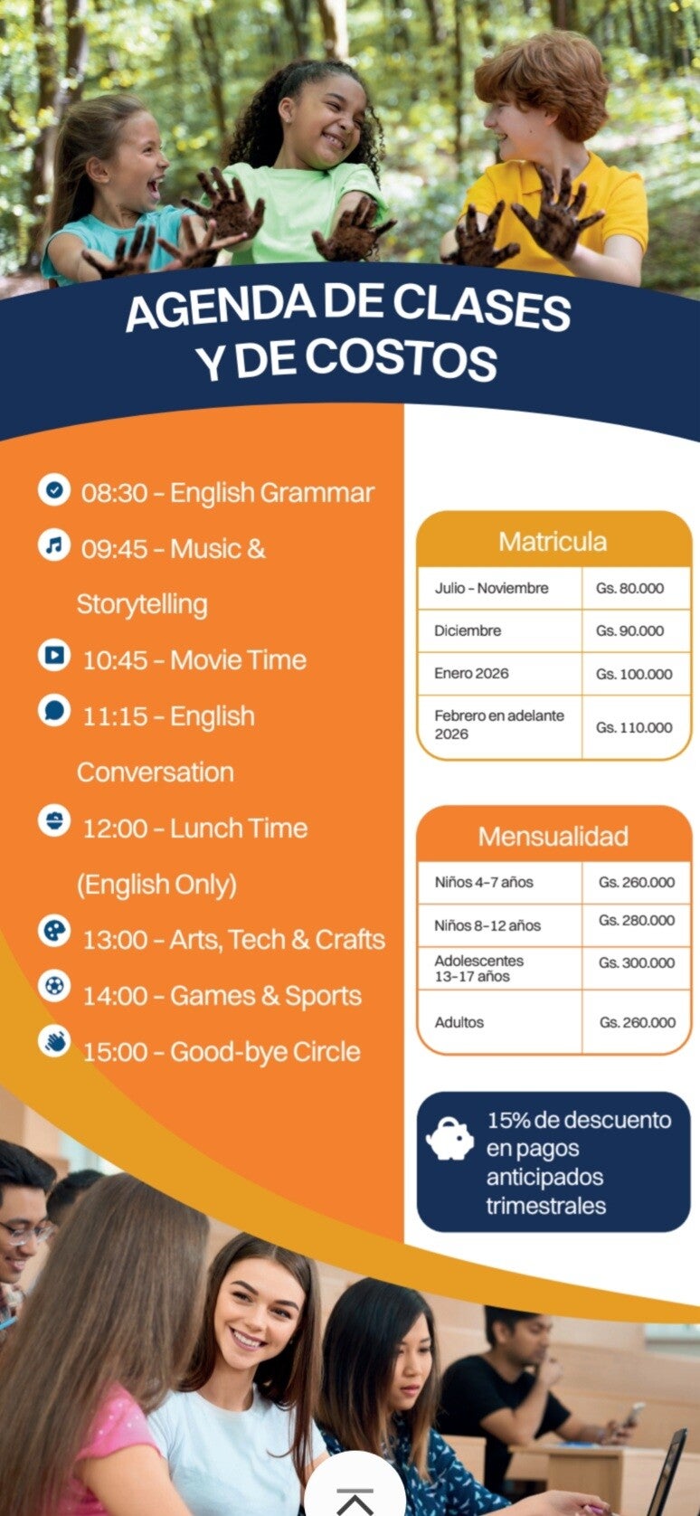 Emmerse English Day Camp is a leading English academy located in San Lorenzo, Paraguay. We believe in the power of adventure and education combined to create a unique learning experience for children. Our dedicated team of educators is committed to making English learning enjoyable and effective for kids of all ages.